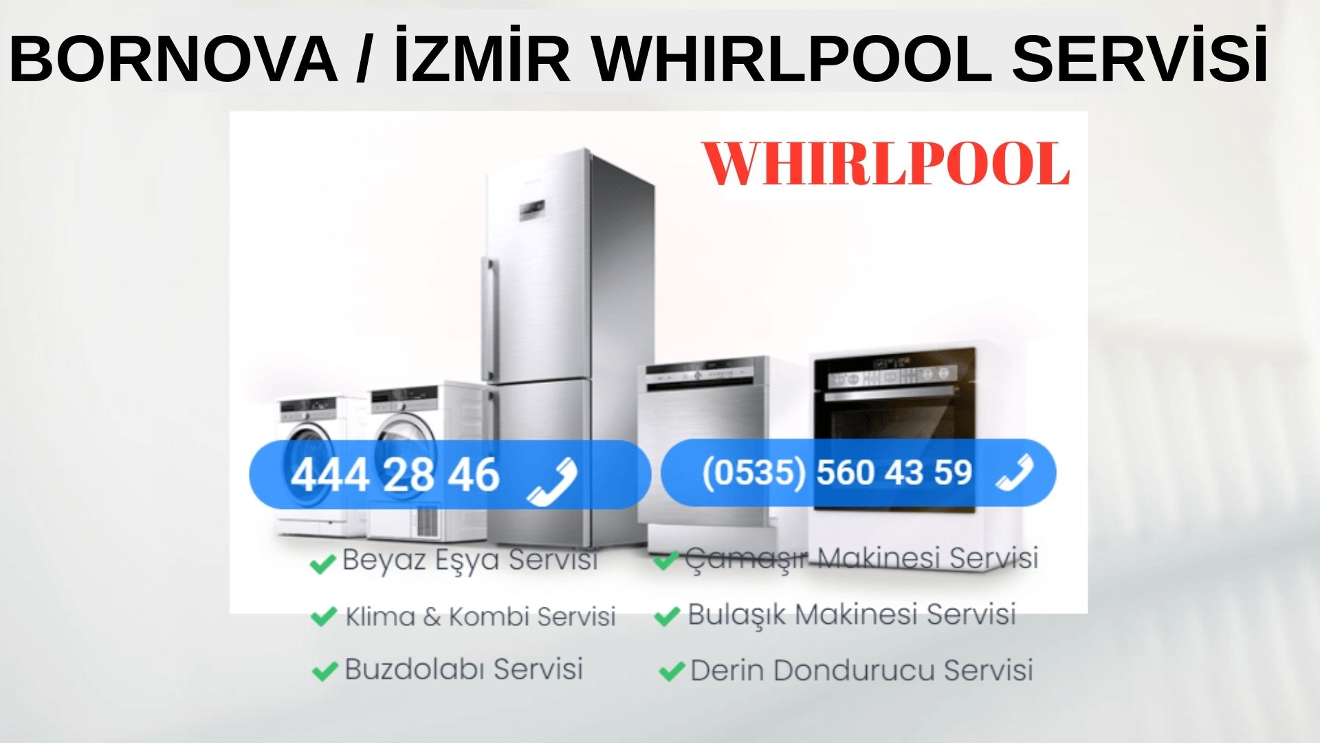 Whirlpool bulaşık makinesi, Whirlpool çamaşır makinesi, Whirlpool buzdolabı arızası durumlarında bizlerden destek almak için haftanın 7 günü boyunca 444 28 46 numarasından arayıp destek ve yardım alabilirsiniz. Aynı zamanda Bornova Aeg Servisi yazımızı okuyabilirsiniz.